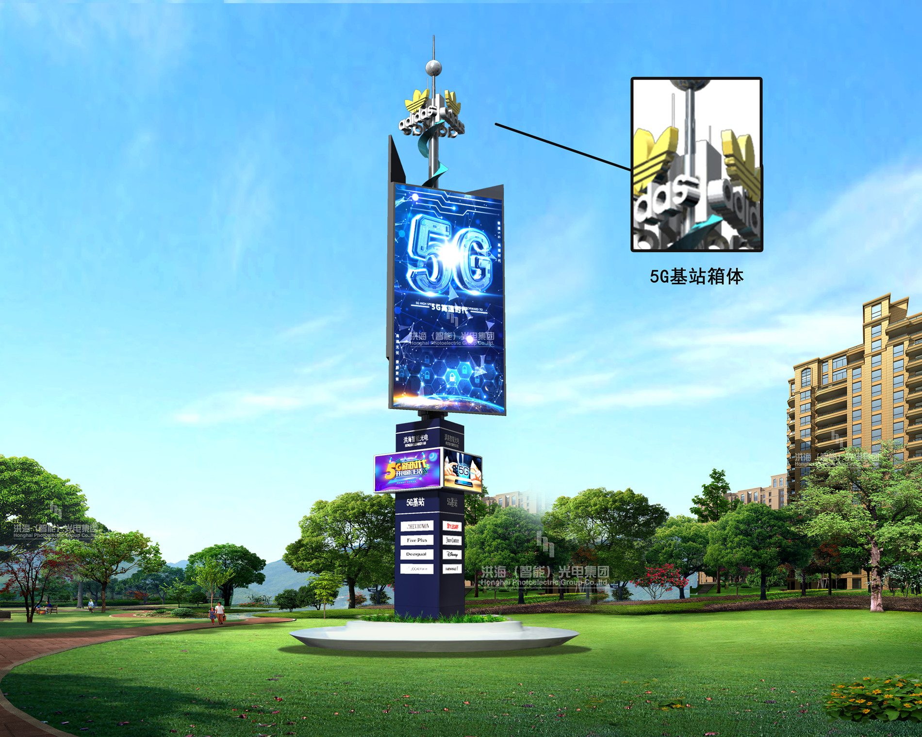 11.洪海5G智慧燈桿螺旋旋轉屏箱體在頂部為什么要加防水板?