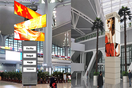 魔方柱,顧名思義,其運行過程中酷似一個運動的彩色魔方,所以大家都稱之為魔方柱或者魔方屏,每臺 設備由三個或者以上的動力總成,每個總成配三塊LED大屏,串聯成塔狀結構,每一運動層既能夠 獨立轉向又能夠組合展示,新型的魔方柱還可以展開組成一個巨大的led顯示屏。魔方柱打破了一般的固定LED的局限性,實現了全角度全天候的播放!