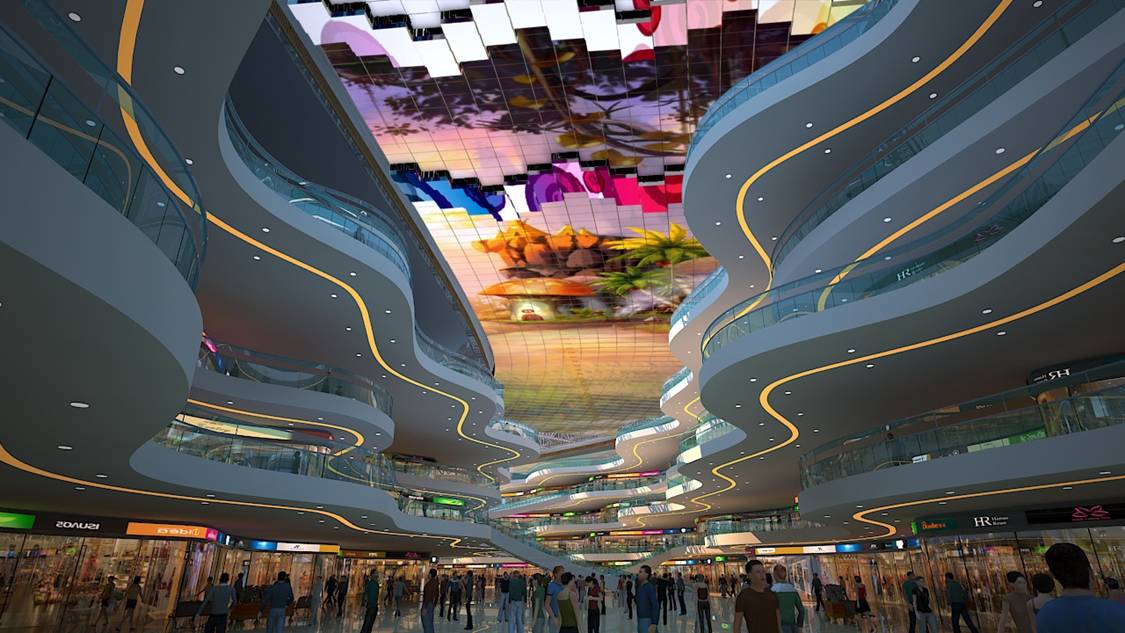 全球掀起天幕熱潮,低碳環(huán)保,美化亮化城市,成為城市宣傳的熱點(diǎn)。天幕,曾經(jīng)出現(xiàn)在科幻電影里,如同一塊夢(mèng)幻的天空,籠罩在未來(lái)都市的上方。什么是天幕,簡(jiǎn)單來(lái)說(shuō),天幕就是橫亙?cè)诳罩械囊粔K巨大的LED全彩顯示屏,利用聲、光、電等技術(shù)手段,營(yíng)造璀璨星空、夢(mèng)幻海洋、美麗花海等畫面,配合各種照明亮化燈帶和三維聲像擴(kuò)聲系統(tǒng),給人震撼的視聽享受。